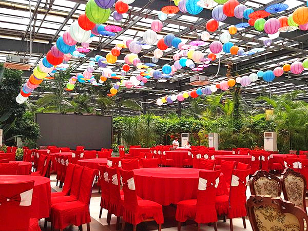 我公司承建的生態餐廳,克服了種植溫室“易結露、視野小”的弊端,以“大空間、環保”為概念,設計開發了高屋脊、大跨度、大開間的專用類型,有1688型(棟寬16米,柱高8米、開間8米)和120型(棟寬12米、柱高6米、開間4米),覆蓋材料采用玻璃或PC板,外觀造型美觀,恢宏大氣,內部視野開闊,寬尚明亮。置身于其中,既能感受田園的韻味,又能享受美味佳肴。